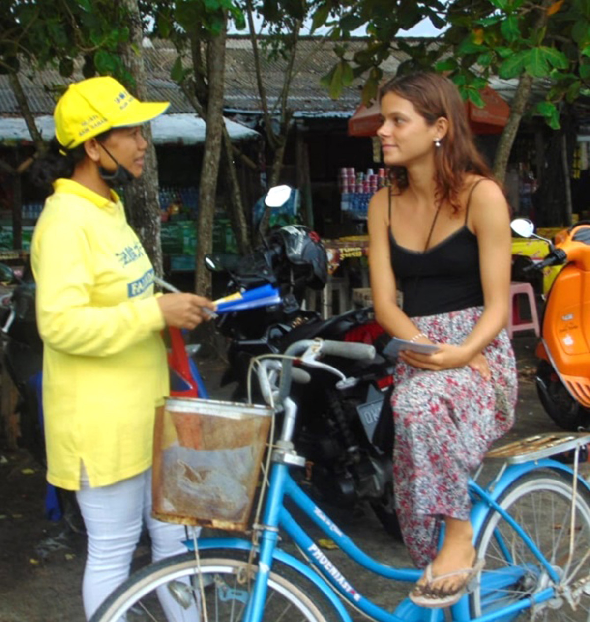 周日的下午,来自世界各地的遊客在海滩上很放松,学员们借此机会向民众发放真相传单,并面对面讲述法轮功的真相。遊客拿了学员派发的法轮功真相资料,表示支持立即停止对中国法轮功学员的迫害。有的了解法轮功真相后的遊客,在征签表上签名制止中共迫害法轮功学员的暴行。