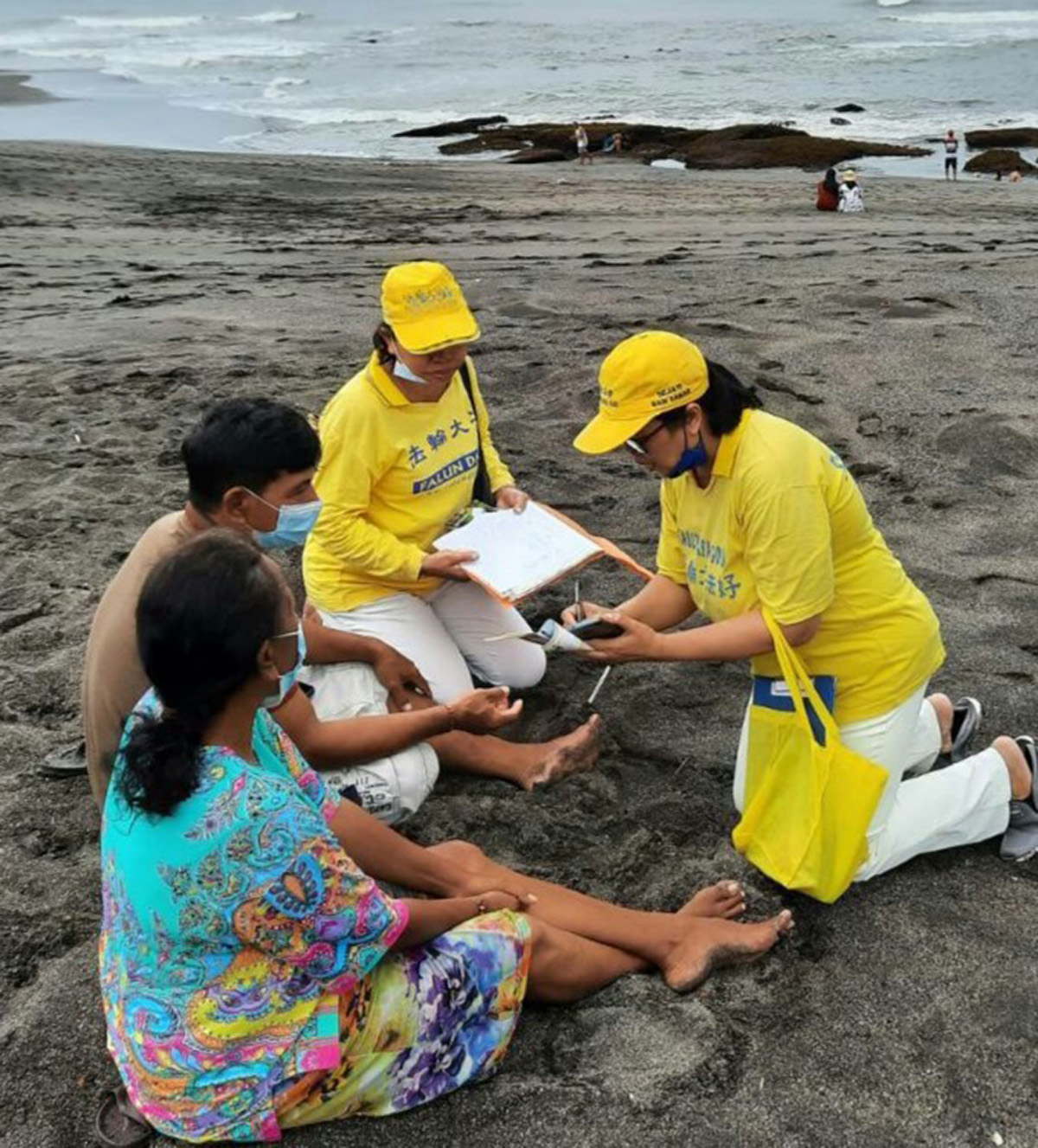 【明慧网二零二二年三月二十三日】二零二二年三月二十日下午,印度尼西亚巴厘岛巴东区的部分法轮功学员在芒古海滩(Munggu Beach)举办集体炼功活动,并在海滩上向民众传播真相,征集反迫害签名。