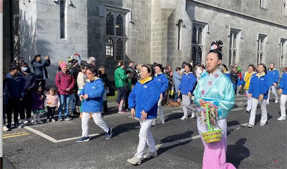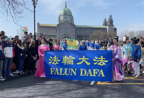 爱尔兰法轮大法学员受邀参加盛会,为观众带来法轮功功法演示、法轮功小弟子方阵和唐鼓队的表演。法轮功方阵所到之处受到热烈欢迎,掌声此起彼伏,有民众跟着学做功法动作。高威市长科莱特·康诺利(Colette Connolly)也在游行结束后和法轮功学员合影表示支持。