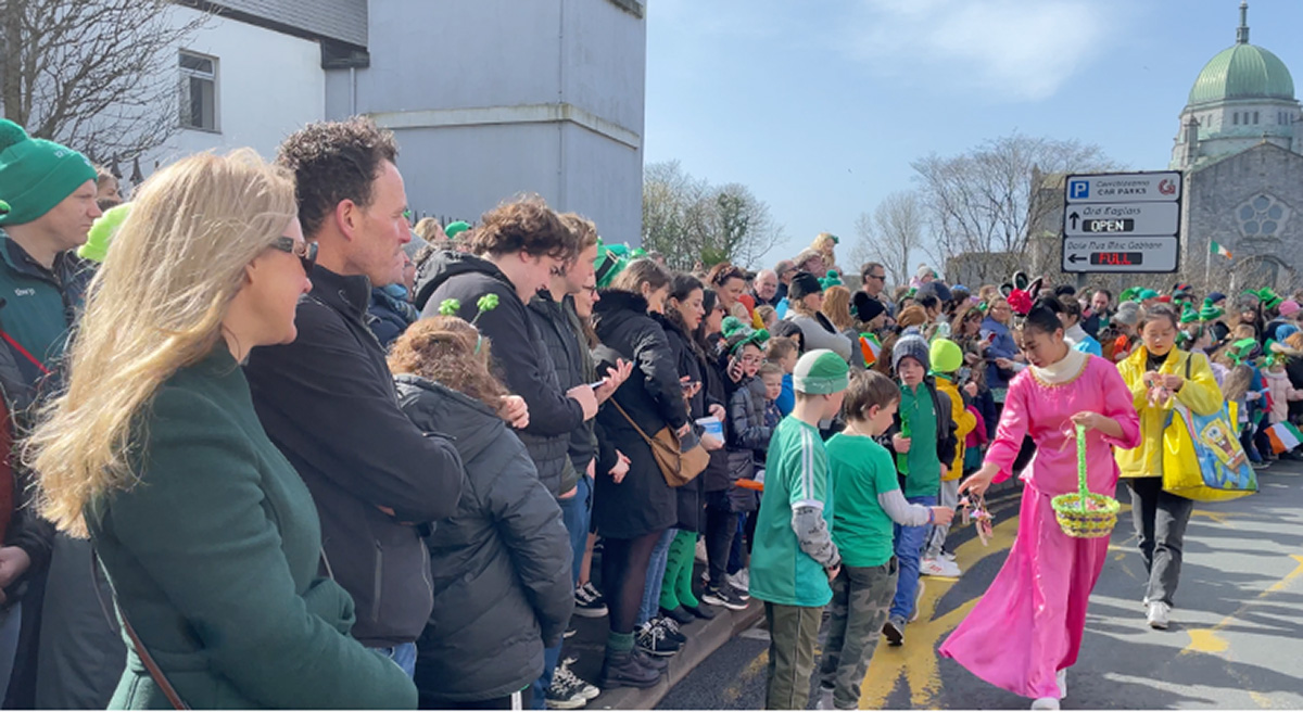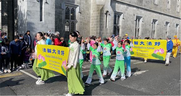 ![]() 图1-4:3月17日爱尔兰法轮大法学员受邀参加“圣帕特里克节”(St Patrick's Day)大游行,为观众带来法轮功功法演示、法轮功小弟子方阵和唐鼓队。 |