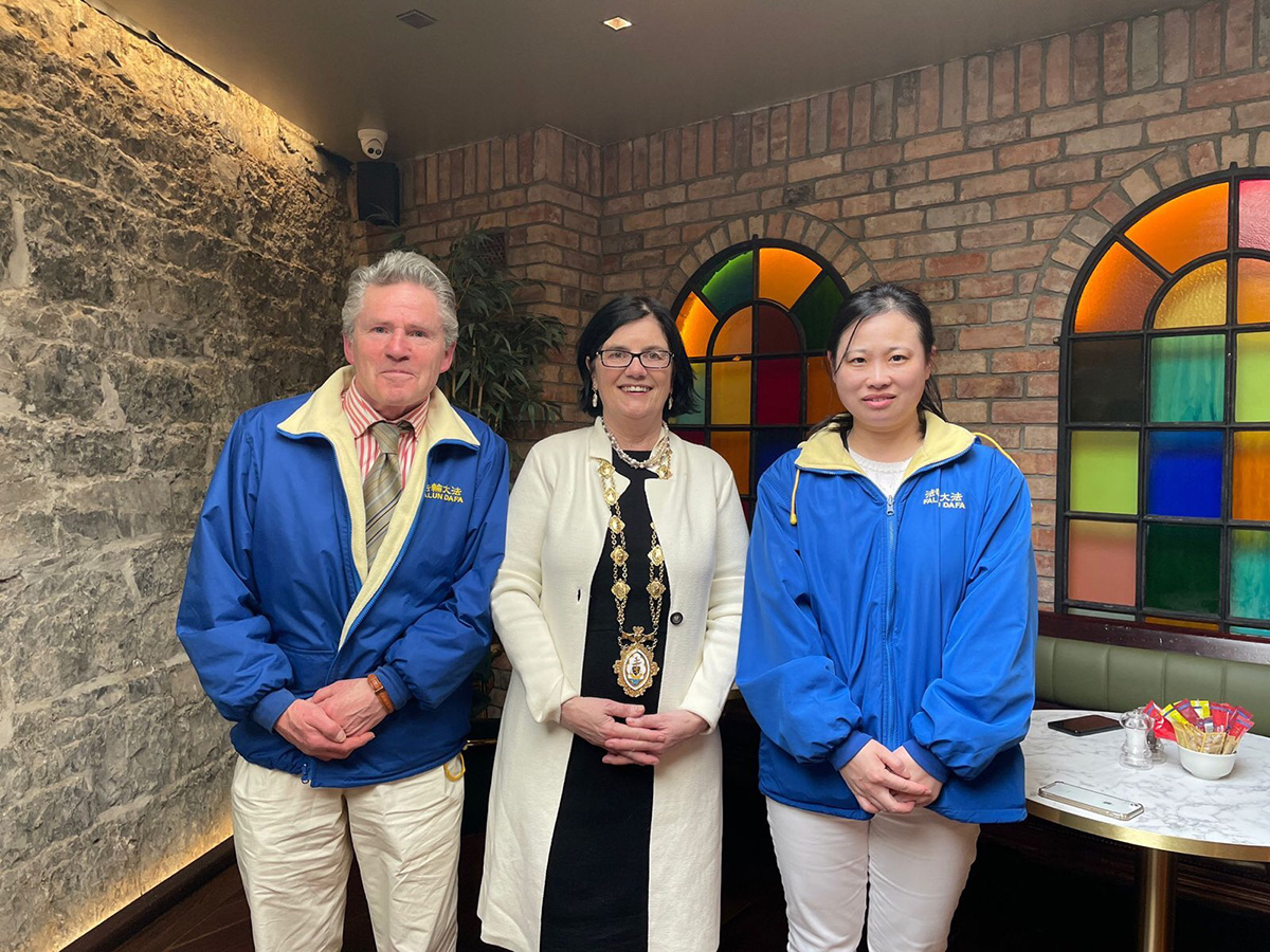 高威市长科莱特·康诺利(Colette Connolly)非常支持法轮功反迫害,游行结束后她和法轮功学员会面,并表示:“(对暴行)保持沉默就是犯罪。”