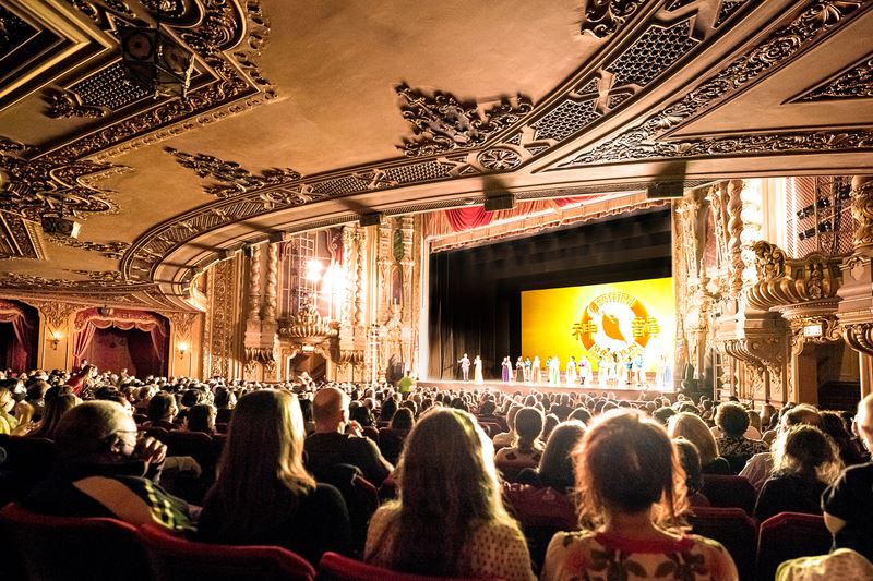 ![]() 图5:二零二二年三月二日至六日,神韵北美艺术团在亚利桑那州凤凰城奥芬剧院(Phoenix Orpheum)的六场演出,场场爆满。图为三月四日晚演出的谢幕照。(大纪元) |