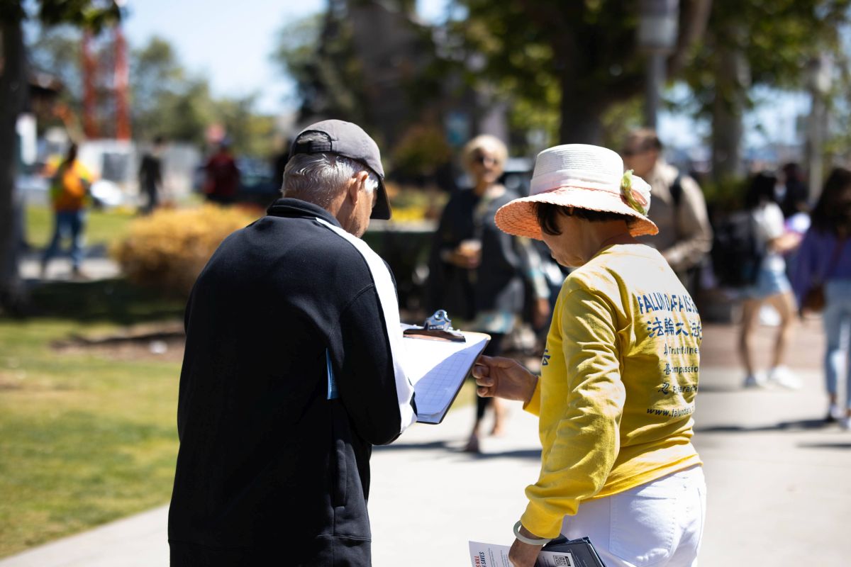 一名男士,在当地经营一家太阳能公司,他主动来签名并说:“我了解法轮功,知道你们在做什么,这很重要。我们现在必须制止中共的恶行,否则我们的国家就没有未来了。”