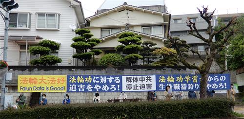 ![]() 图2~5:二零二二年四月二十三日,日本熊本地区法轮功学员在九州地区中领馆前展示真相横幅,呼吁停止迫害。 |