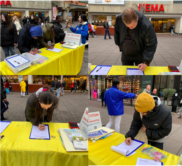 当日下午,部分法轮功学员来到海牙最繁华的市中心,进行弘法活动。向民众发传单、讲真相,征集制止中共活摘法轮功器官的签名。
