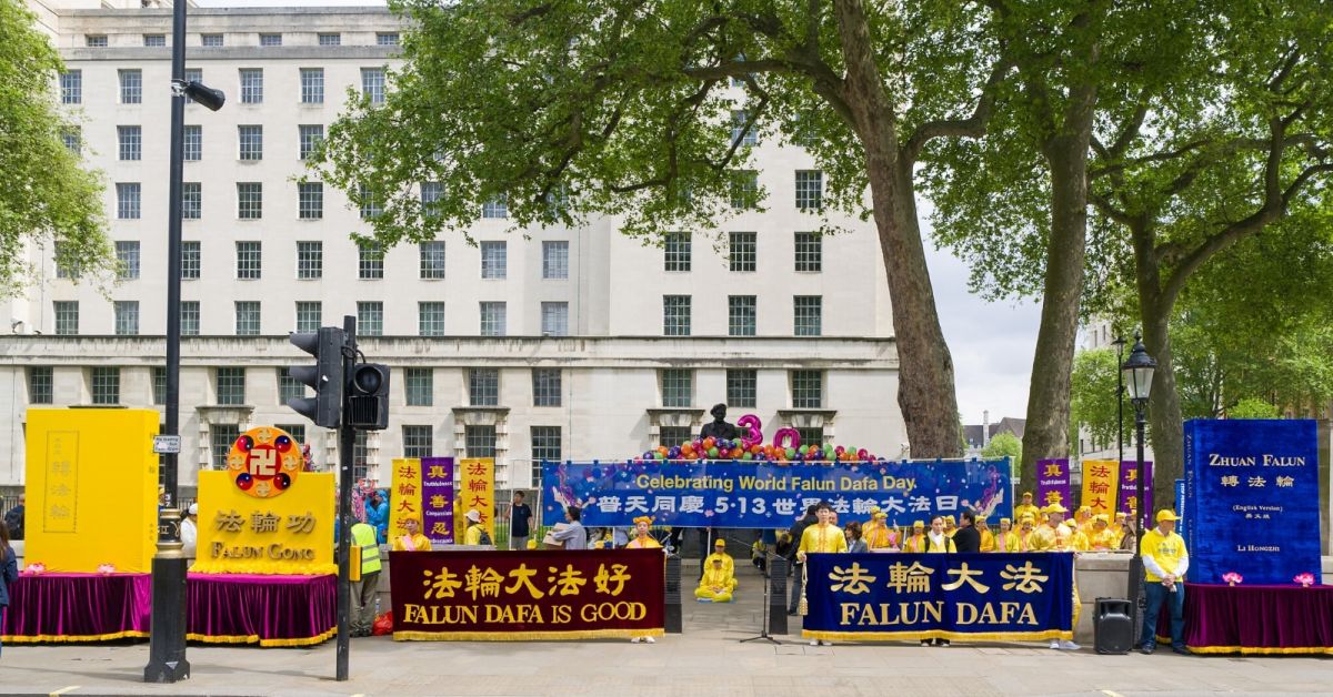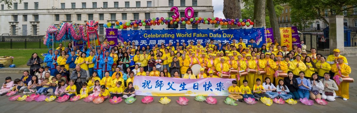 游行的终点是英国首相府唐宁街10号对面,游行结束后举行了集会,法轮大法佛学会代表以及法轮功之友代表等先后发言,并宣读了十多位英国政要为法轮大法弘传世界三十周年发来的贺信。