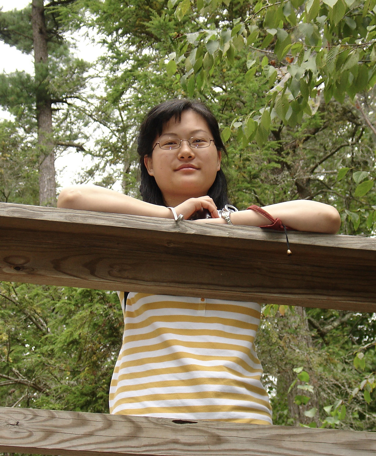 ![]() 图2:金静在参加神韵巡回演出期间,曾选修飞天艺术学院大学班,图为金静飞天艺术学院附近公园里 |