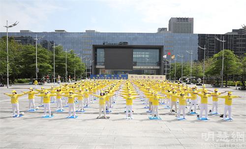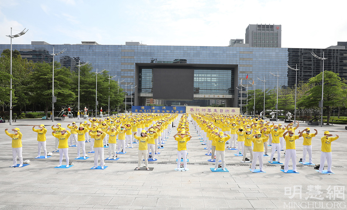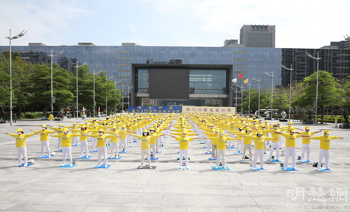 为迎接五月十三日第二十三届世界法轮大法日的到来,来自各年龄层、各行各业的学员,以展示法轮功的五套功法与民众分享喜悦。
