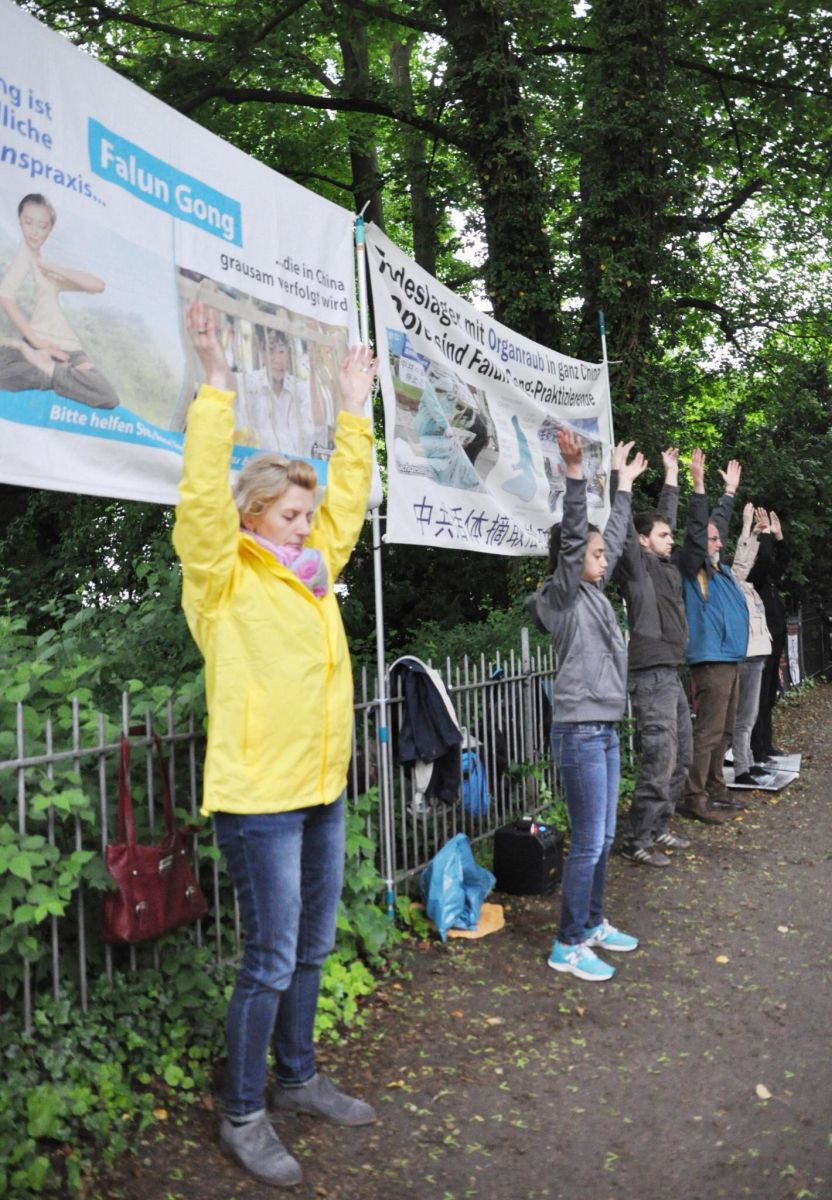 ![]() 图3:汉堡学员在中领馆前讲真相 |