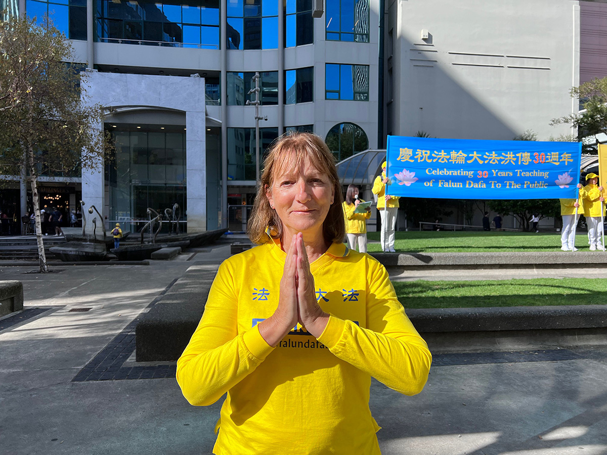 在炼第一套功法的前五分钟,她感到背部和手臂非常疼痛,但是她却心生喜悦,因为她知道她找到了一直在寻找的。她当即请回一本《转法轮》,用整整一夜的时间通读了一遍,内心的欣喜和安宁无法用语言形容。她明白了,以前为什么要遭受艰难困苦,那是为了还清业债,还清业债以后才能得法。法轮大法让她明白了生命的真正意义,指明了她的人生方向,她现在内心充实和满足,以前的伤感和恐惧不复存在了。