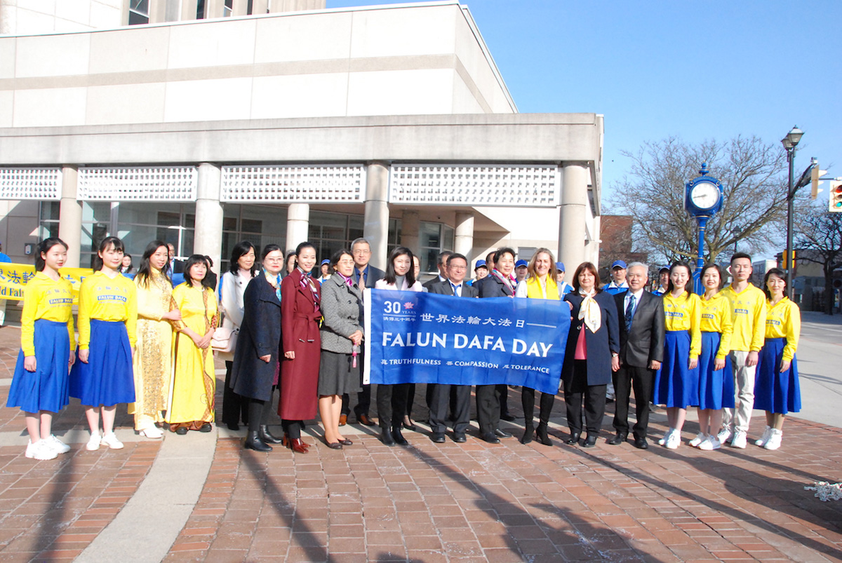 市长帕特森(Bryan Paterson)代表市议会宣布五月十三日为金斯顿市法轮大法日;当晚,市政厅亮起了彩灯以示庆祝。