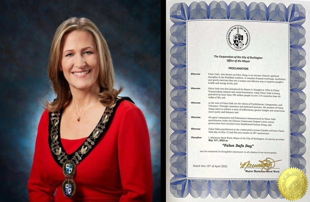 作为伯灵顿市长,我特此宣布在我市,二零二二年五月十三日为法轮大法日。