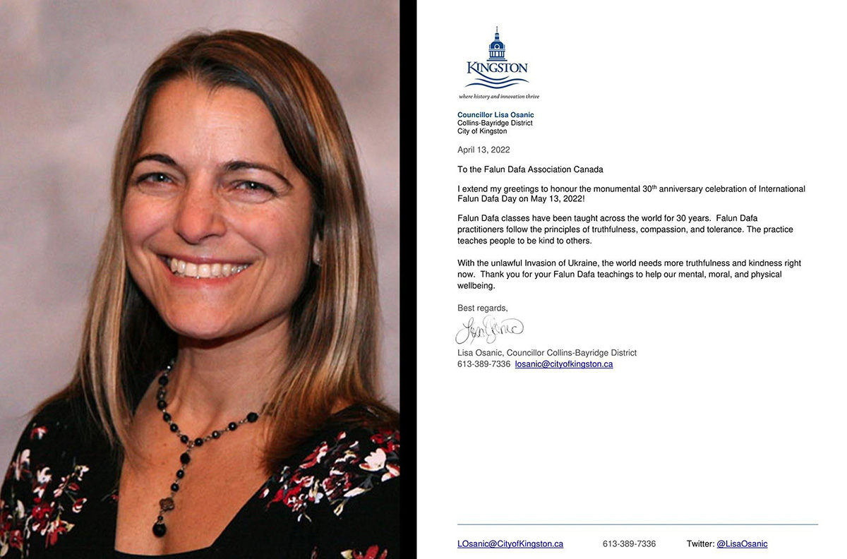 金斯顿市议员丽莎·奥萨尼克(Lisa Osanic)贺信中说: