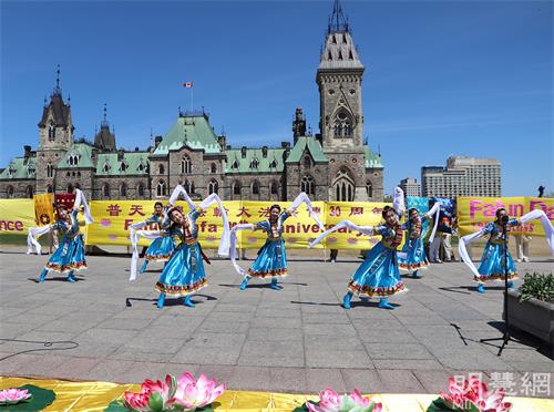 ![]() 图4~6: 法轮功学员们载歌载舞,庆祝世界法轮大法日 |