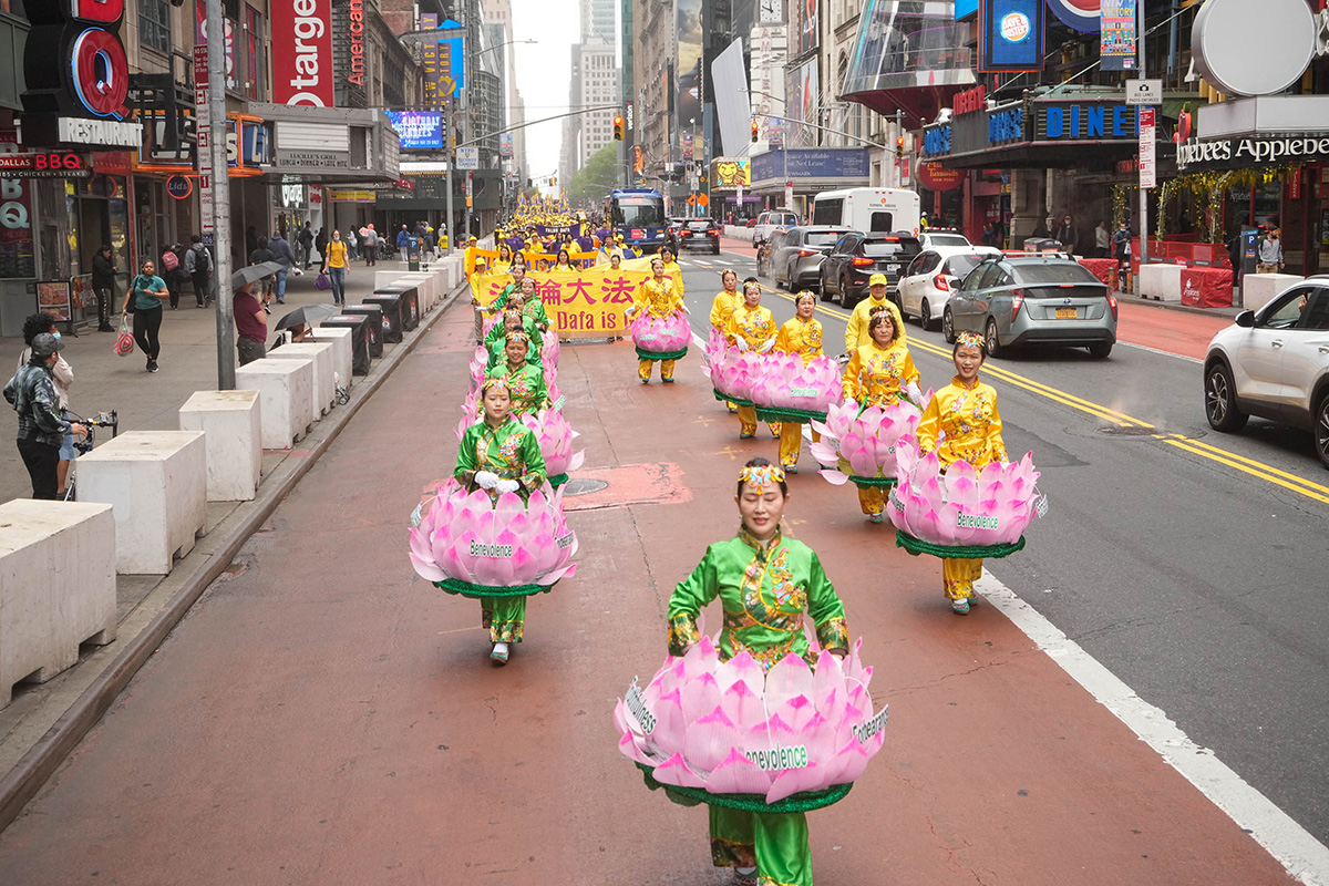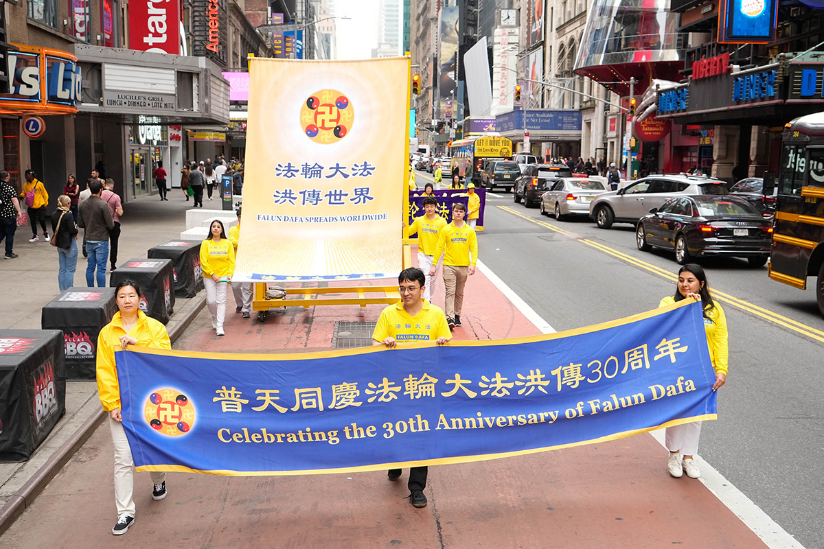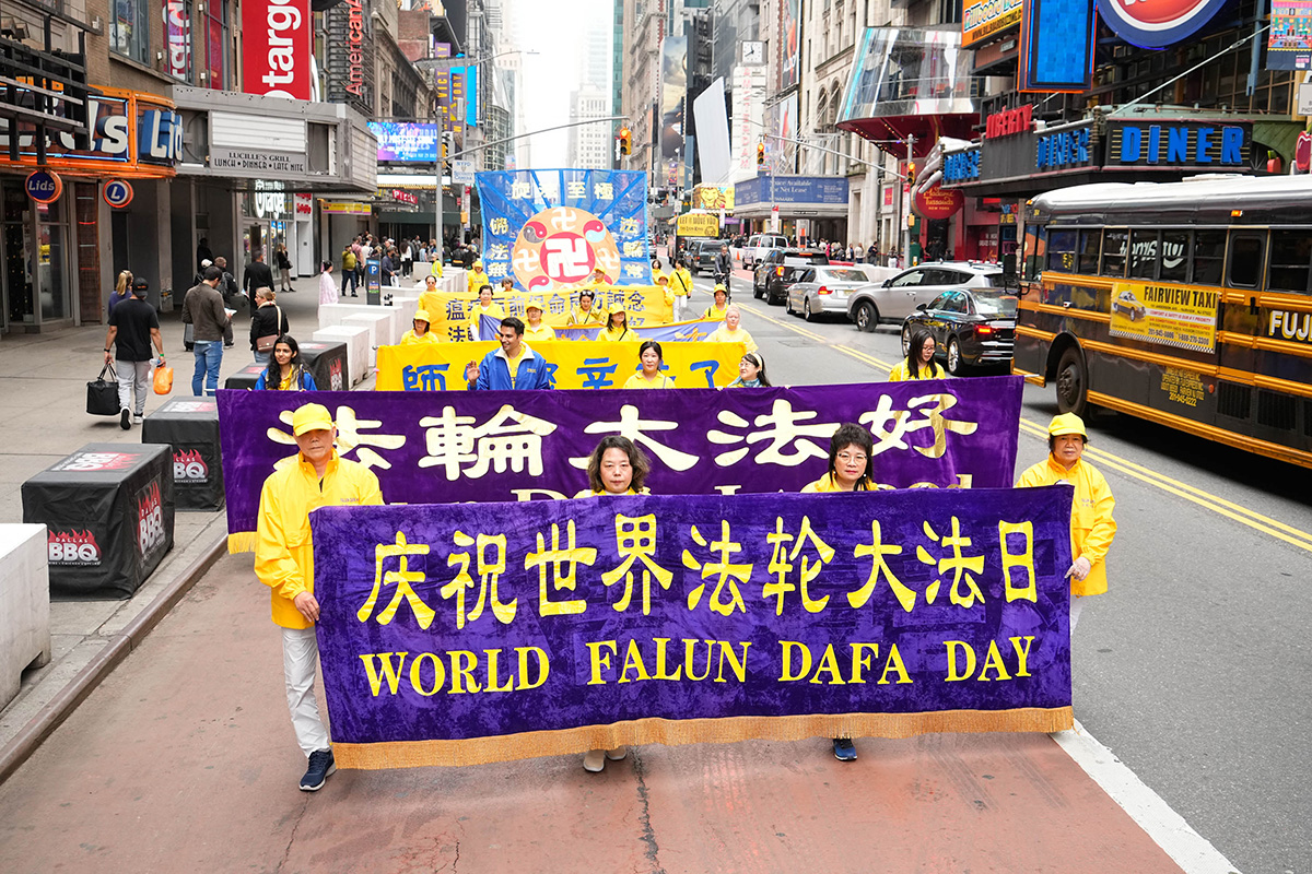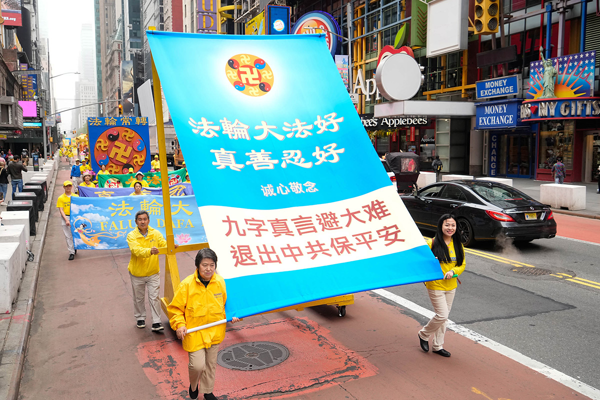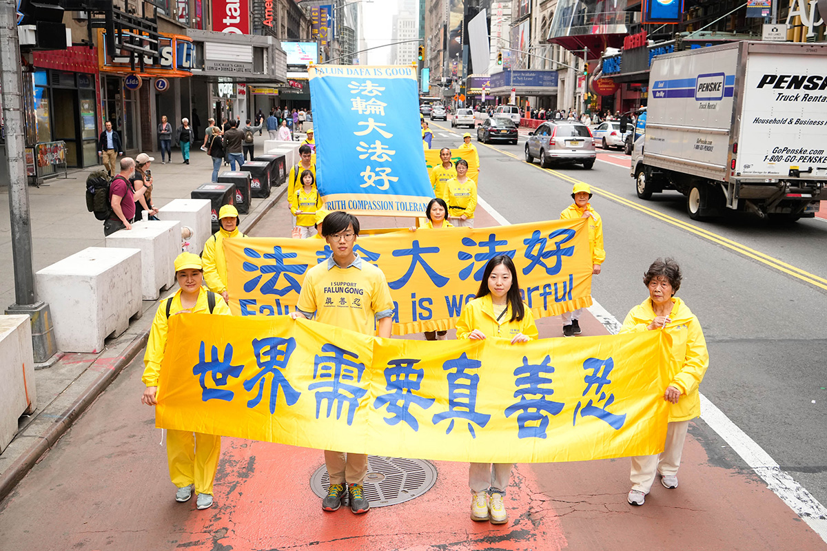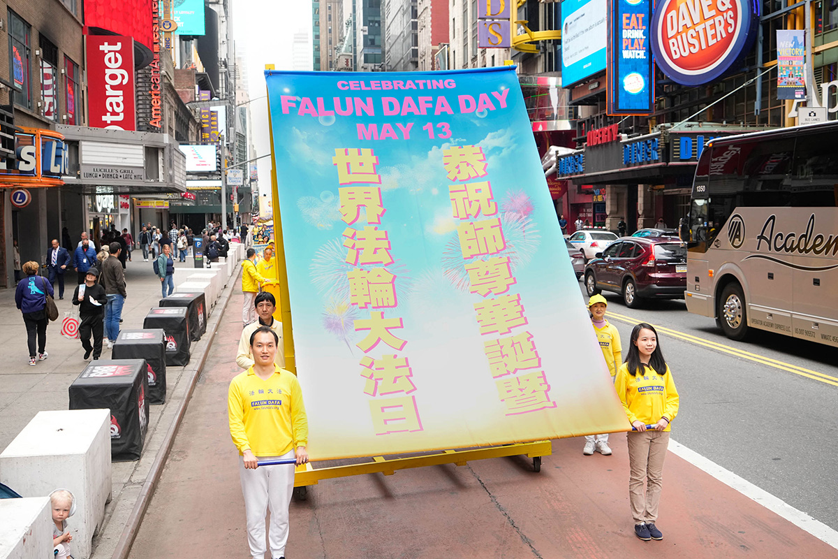 主办方纽约法轮大法学会的负责人易蓉接受采访时表示,每年纽约法轮功学员都在曼哈顿最繁华的街区举行盛大游行,庆祝“五·一三世界法轮大法日”。法轮大法一九九二年从中国长春传出,得到中国人非常热烈的欢迎和响应。法轮功祛病健身有奇效,能提升人的道德,使人修炼到更高的层次,很受中国民众欢迎,瞬间传遍大江南北。但由于中国共产党妒忌修炼法轮功的人数超越了共产党员的人数,发起了迫害。二十三年过去,大法弟子坚定地维护信仰、传播真相,大家看到法轮功不仅没有被迫害倒,反而洪传世界一百多个国家和地区,大法师父几次获得诺贝尔和平奖的提名。全世界都有法轮功弟子,“我自己就是在美国得法的”。
