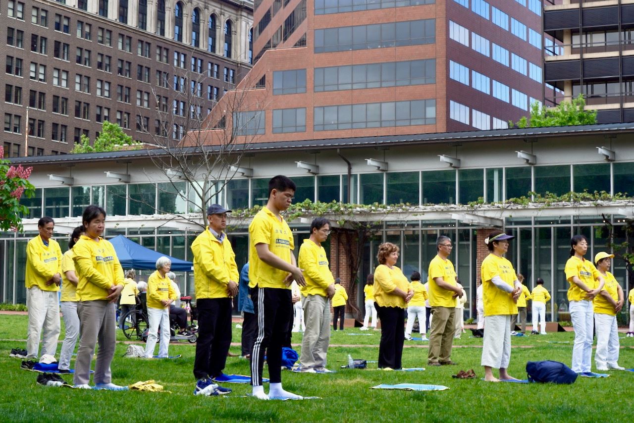 ![]() 图1~3:五月十五日,大费城地区部份法轮功学员在费城著名历史景点自由钟独立广场举办了盛大的集会,庆祝法轮大法洪传世界三十周年。 |