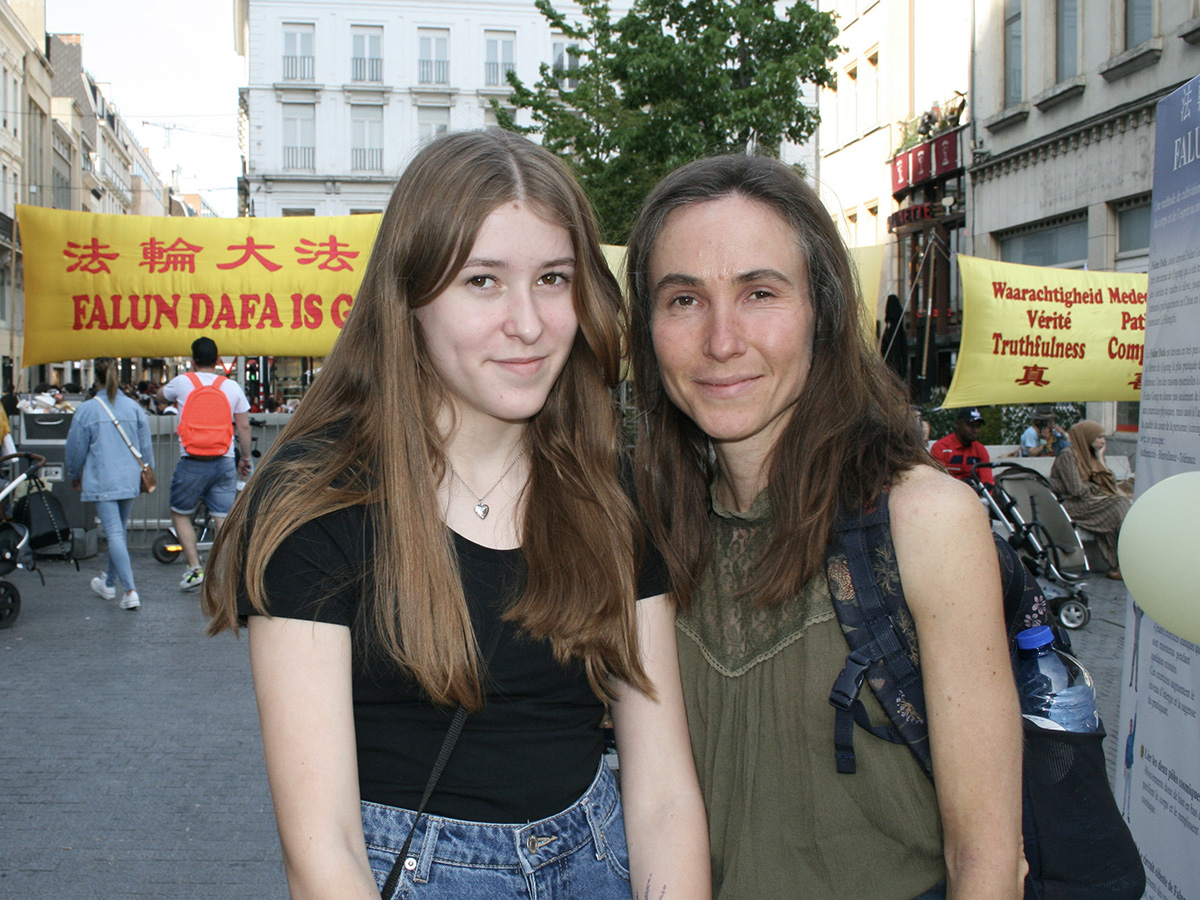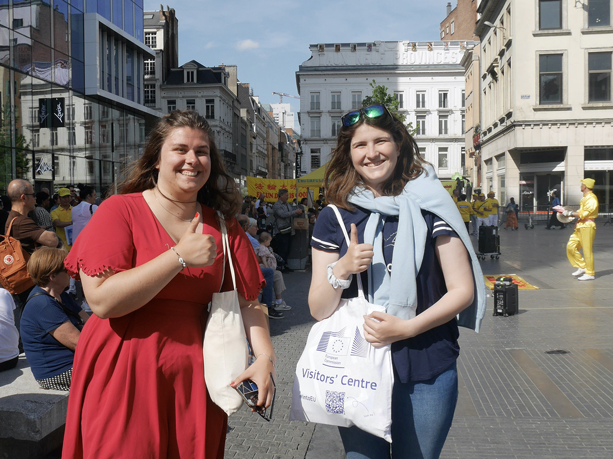 ![]() 图9:来自法国的索莱娜(Solène )和朋友曼侬(Manon)赞扬法轮功学员 |