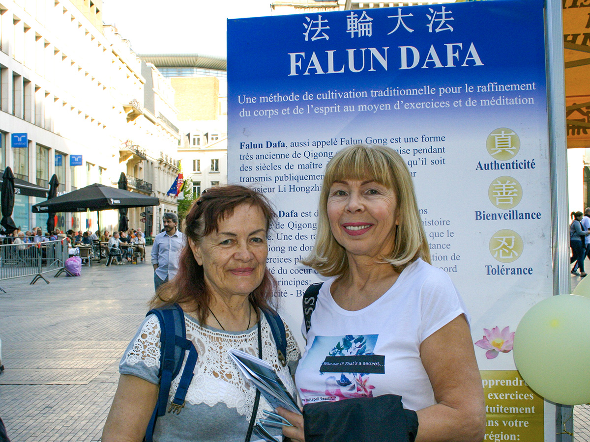 帕森科娃说她就居住在布鲁塞尔市,是俄罗斯族裔比利时人,她说她实际上已经在了解法轮功了,她知道法轮功对身体健康有很多帮助。她曾经在俄罗斯家乡也看到有人在炼法轮功,她在香港、加拿大、美国、很多国家都看到过他们,她说:“法轮大法真是无处不在。”