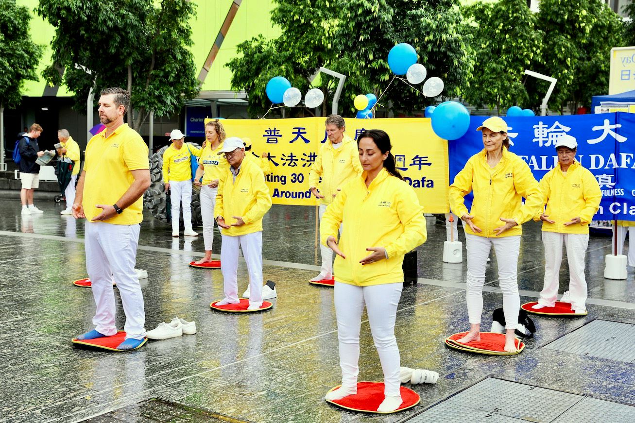 ![]() 图2~6:二零二二年五月十三日,澳洲昆士兰法轮功学员在布里斯班广场举行庆典活动,向过往民众展示了法轮功五套功法、腰鼓、舞龙和打鼓,精彩的表演博得了民众喝彩。 |