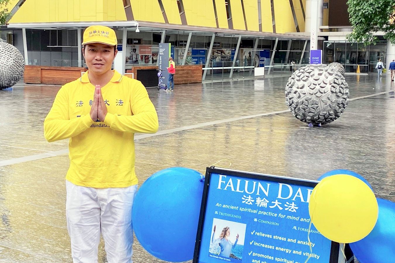 赫蒙(Hermon)是一位出租车司机,他表示,虽然下着雨,但是活动现场的法轮功学员都很快乐,很善良,很祥和,令他印象深刻。