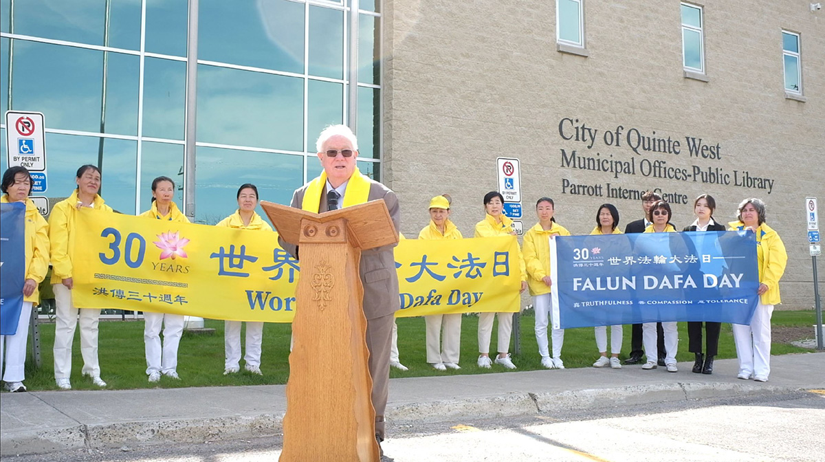 安省的昆特西市(Quinte West)坐落在风景秀丽的昆特湾沿岸,是通往世界著名的 Trent Severn 水道的门户。同时,该市也是加拿大最大的军事基地 8 Wing Trenton 的所在地。五月十一日,市长吉姆·哈里森(Jim Harrison)亲手升旗,并称赞真善忍是普世价值。