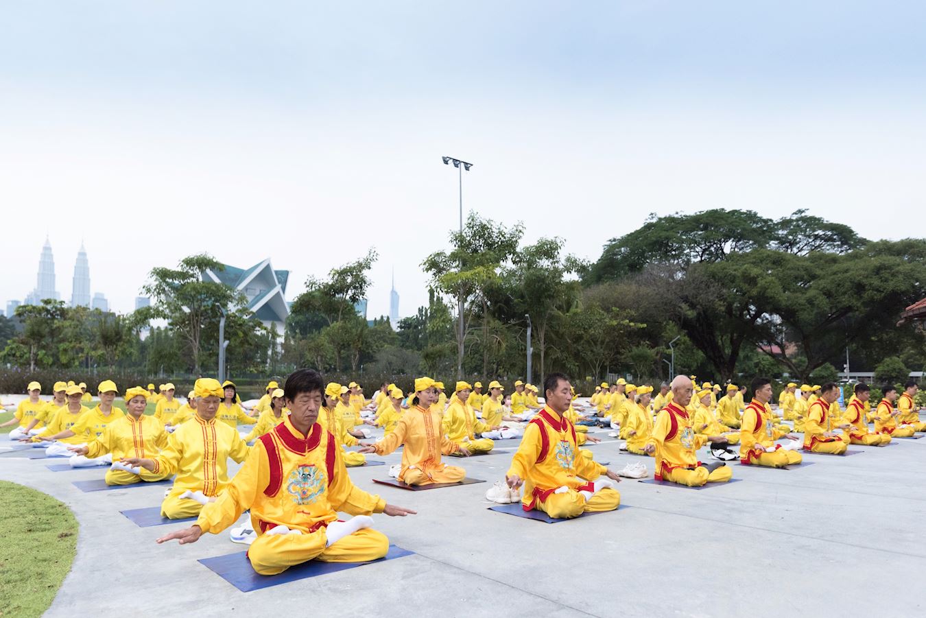 清晨七点起,法轮功学员开始在吉隆坡著名的休闲公园——蒂蒂旺沙湖滨公园(Titiwangsa Lake Garden)广场前进行集体炼功,场面庄严祥和。学员在集体炼功后合照,向法轮功创始人李洪志先生表达衷心的祝福与感恩,感谢师尊把法轮大法的美好带给本地民众。