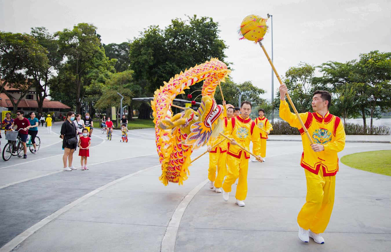 ![]() 图4~5:马来西亚法轮功学员在吉隆坡著名的休闲公园——蒂蒂旺沙湖滨公园广场,举行法轮大法弘传30周年庆祝活动,图为舞龙队。 |
