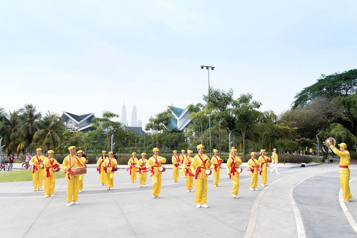 ![]() 图6:马来西亚法轮功学员在吉隆坡著名的休闲公园——蒂蒂旺沙湖滨公园广场,举行法轮大法弘传30周年庆祝活动,图为腰鼓队。 |