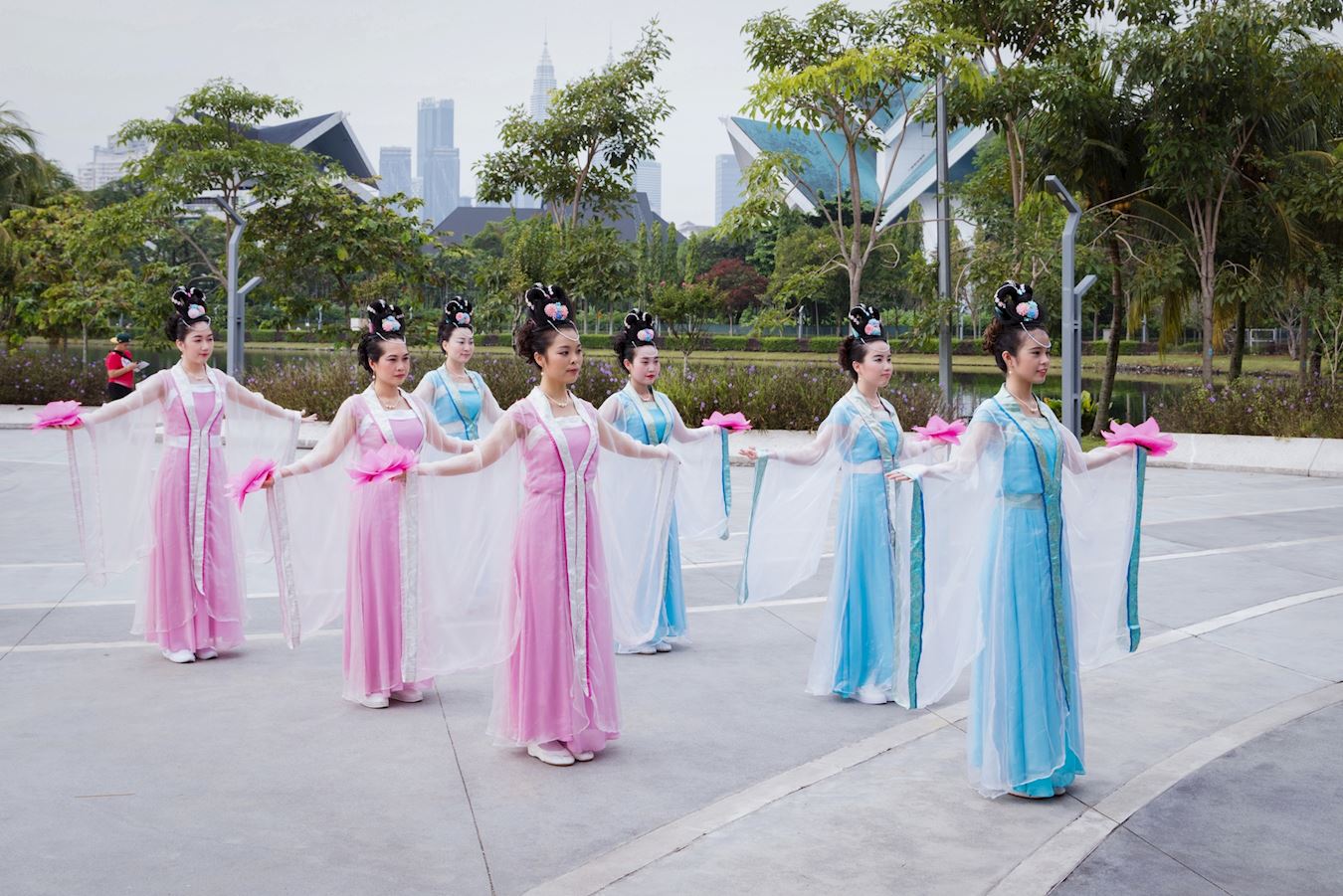 ![]() 图7~8:马来西亚法轮功学员在吉隆坡著名的休闲公园——蒂蒂旺沙湖滨公园广场,举行法轮大法弘传30周年庆祝活动,图为仙女队。 |
