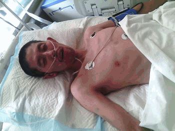 八月十一日,回家后,他不能进食,不能说话,一阵冷,一阵热,冷时浑身打冷战,热时叫往身上倒凉水,全身器官衰竭。有时身体内发痒,叫家人用拳头捶他后背,有时不清醒,把自己脱得一丝不挂。这种反常状态很象用毒品后的反应。父母极度悲伤,把张国立送到庄河市中心医院重症监护室抢救。庄河公安部门指派警察在医院监控。
