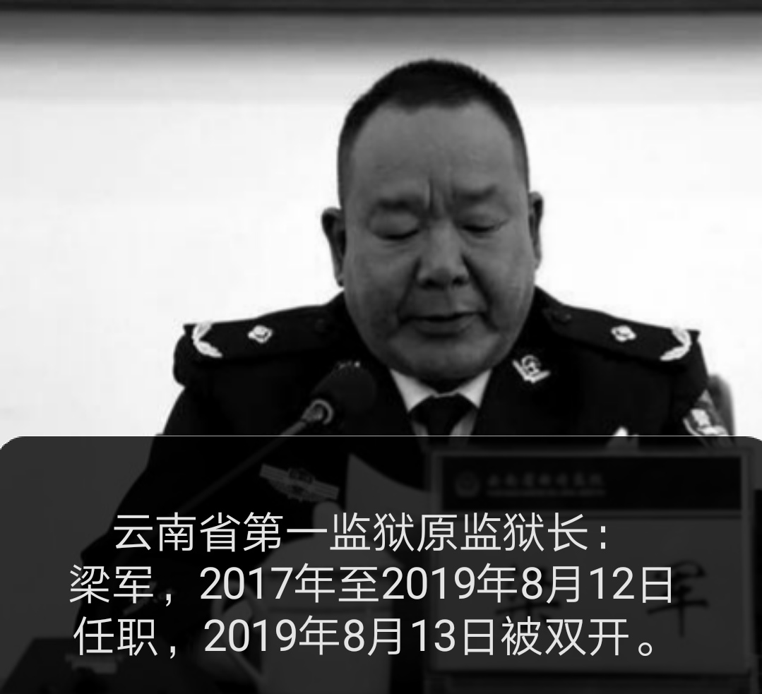 (1)梁军,2017年至2019年8月12日任云南省第一监狱监狱长,2019年8月13日被双开。