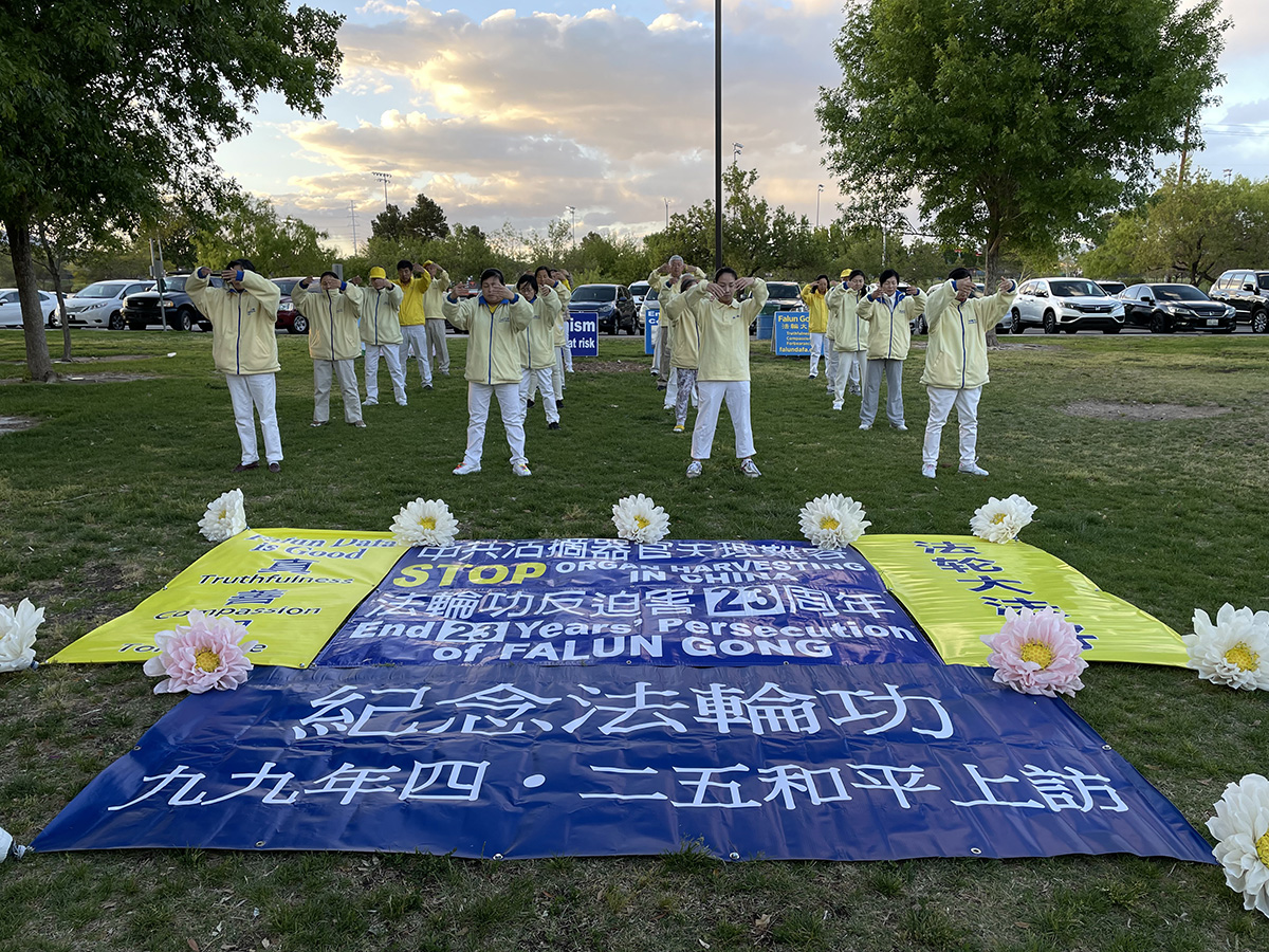 二零二二年四月二十二日傍晚,美国西部名城拉斯维加斯的法轮功学员在市区公园,以集体炼功、学员发言和诗歌朗诵的形式,纪念“四·二五”和平上访二十三周年,向人们讲述法轮功真相。同时也谴责中共对法轮功修炼者长达二十三年的残酷迫害,并呼吁全世界正义力量共同制止中共对法轮功的迫害。