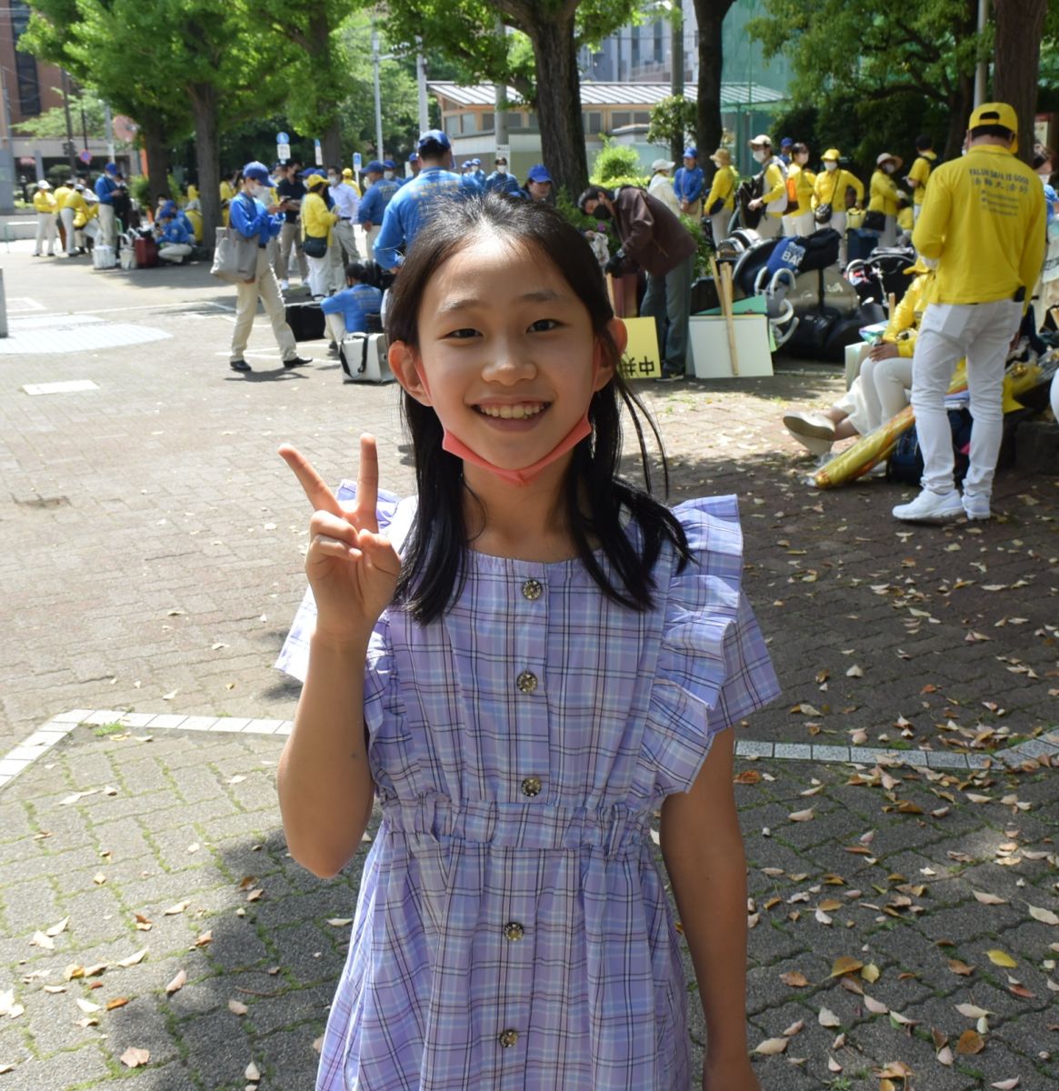 今年十岁的山川明理从记事起就开始修炼了。八岁时她在翻看“真善忍美展”画册时,看见画中一位被警察拷问的女学员的周围闪着光芒。她明白了是师父一直在看护着弟子,非常感动,由此更想了解关于修炼的事,变得更加好好学法炼功,按照真、善、忍的准则要求自己了。