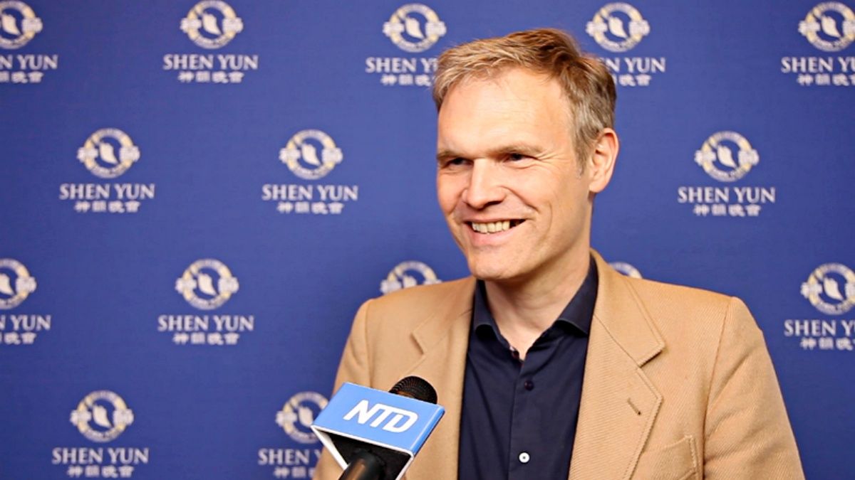 德国获奖影视制作人罗伯特·西比斯(Robert Cibis),也同样惊叹神韵超水准的演出。他在四月二十九日晚,观看了美国神韵世界艺术团在德国首都柏林市中心波茨坦广场剧院(Theater am Potsdamer Platz)的第九场演出。