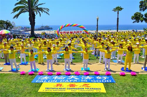 二零二二年五月一日,大洛杉矶地区的法轮功学员聚在著名的旅游胜地圣莫妮卡(Santa Monica)海滩举行隆重的庆祝活动。“恭祝师尊生日快乐”、“法轮大法好”、“真善忍好”, 祝贺声声响彻云霄,荡漾在蓝天海洋。法轮功学员对李洪志师尊表达由衷的感恩。