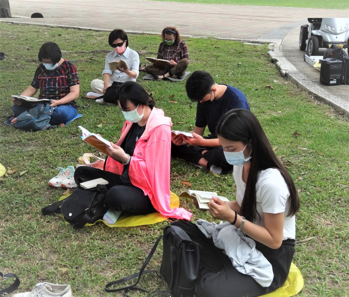 ![]() 图3~5:屏东法轮功学员们集体学法,并分享心得交流,在修炼路上比学比修。 |