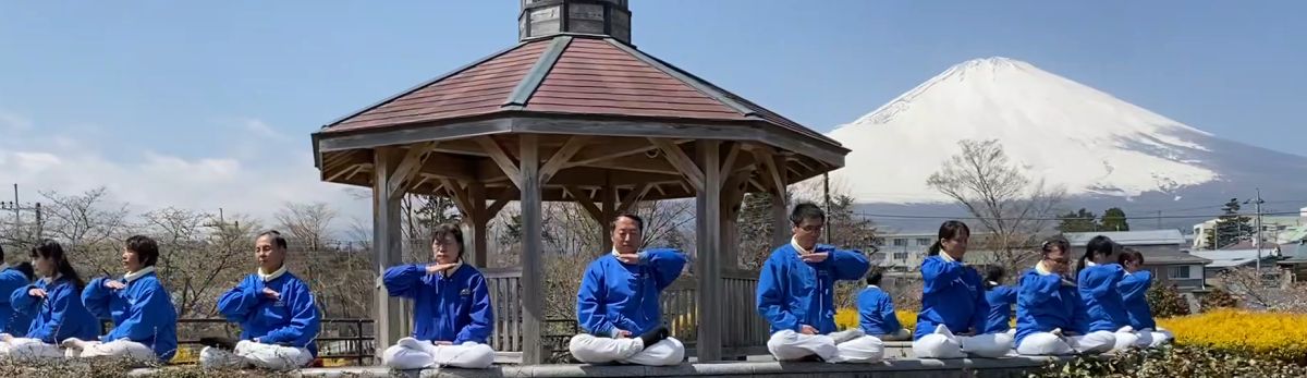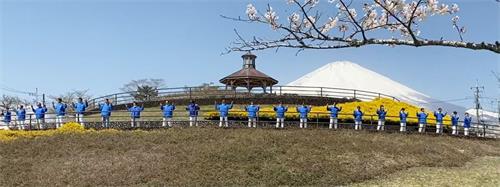 当天,学员们在富士山下集体炼功,向人们传递大法的美好。午后,学员们在富士山周边地区,开始挨家挨户投递真相资料。