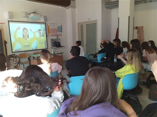神韵巡演到意大利时,学校还组织了学生前去观看,学生们惊叹神韵演出的美丽,更是近距离的感受到中国传统文化中散发出来的优雅及韵律,给他们留下了深刻的印象并骄傲自己有幸学习汉语,相融于这样伟大的国度及文化。