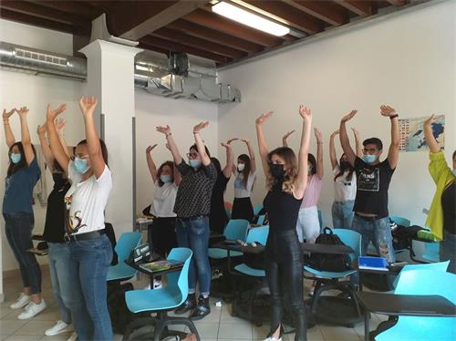 二零二二年开学以来,在中文老师及体育课老师的配合安排下,学校体育课也安排了教授法轮功功法课程,这样不仅中文班学生,其他语言班学生也能在体育课上系统、详尽地学炼法轮功功法。课上学生们都感受到强烈的能量及祥和,宁静的安抚力量。