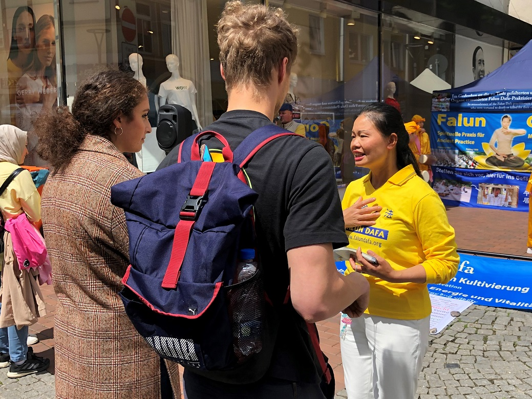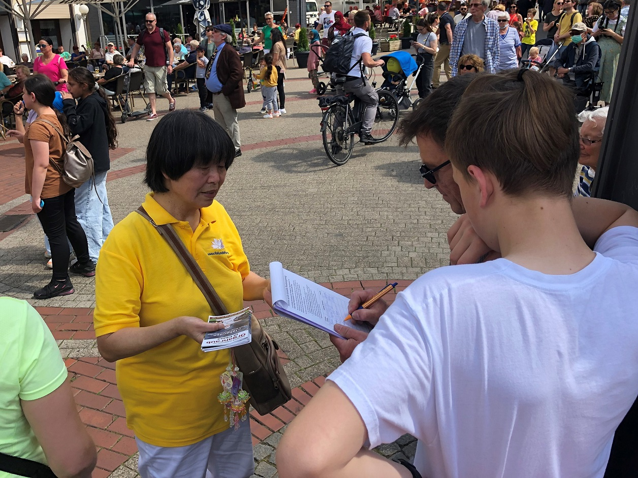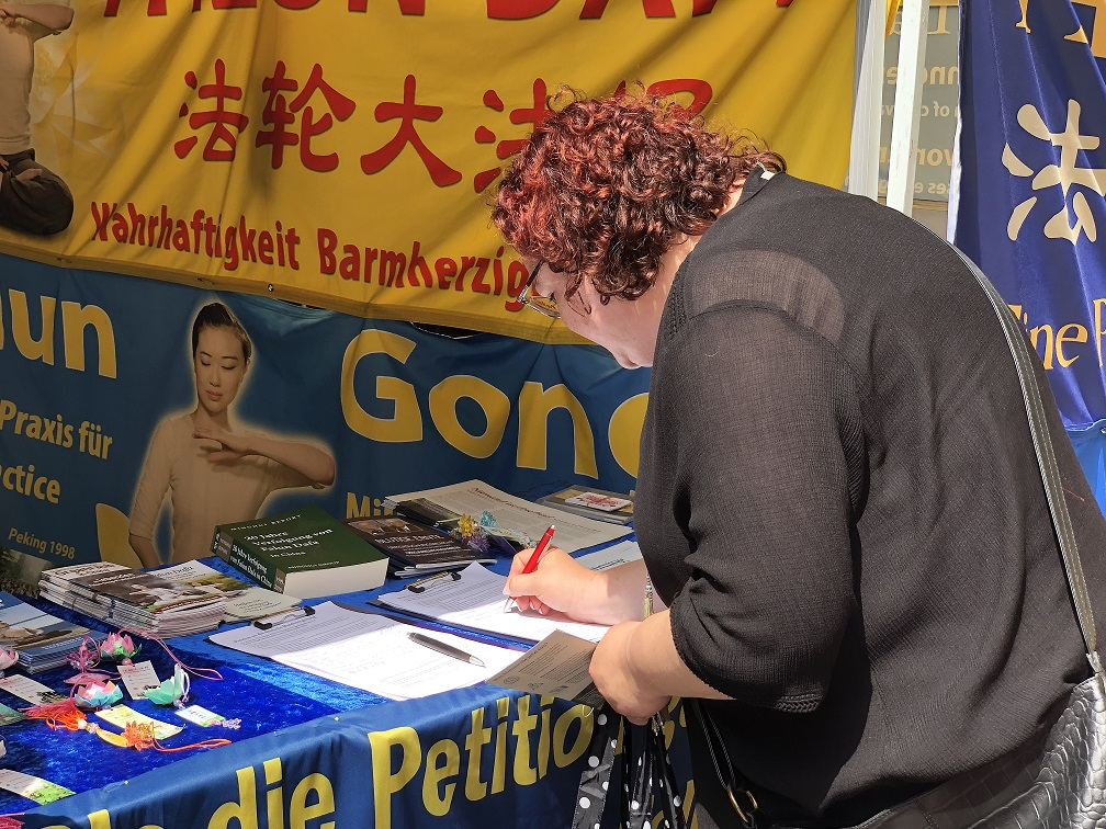 安雅(Anja)刚看到学员的展位就径直上前为反迫害签名。她说:“我在大概三年前就听说过活摘器官。我的工作和移民的德语课有关,在和移民打交道时听说了这件事。后来我在网上也查询到了相关信息,今天看到你们,我就来签名了。”她表示,中共迫害信仰真、善、忍,只能说明中共的邪恶。