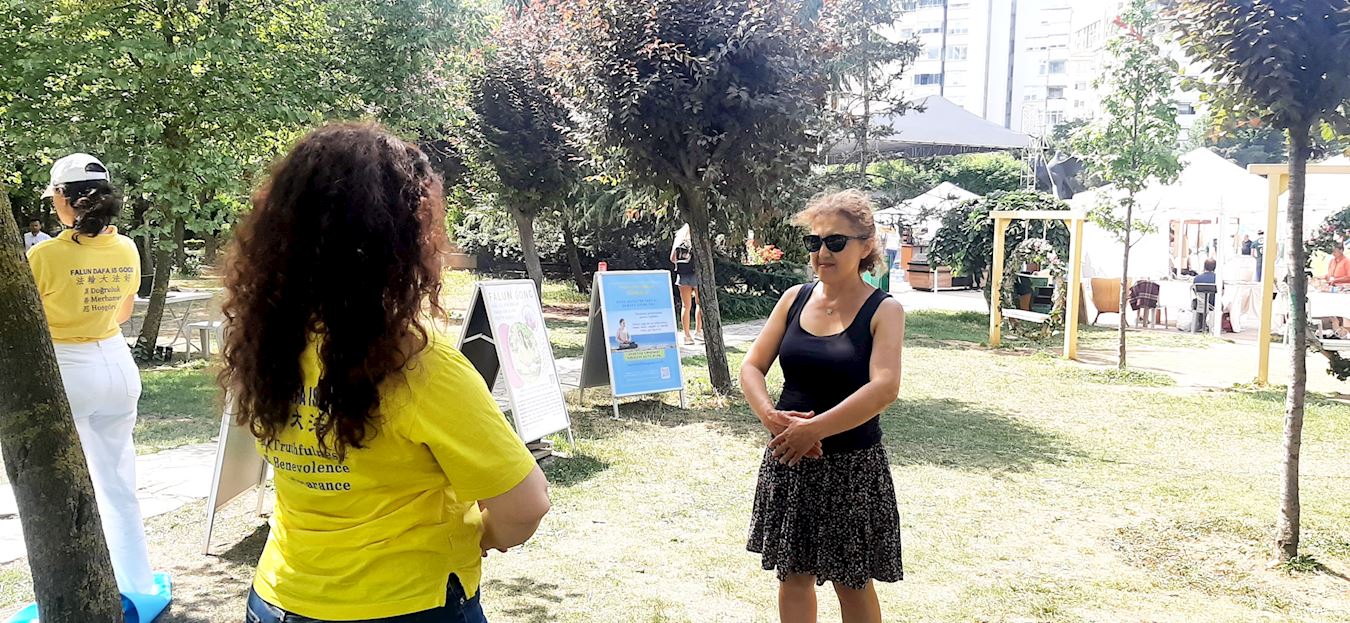 身为家庭主妇的塞维姆(Sevim)女士说:“炼功后,我觉得我的杂念没了。我觉得很放松,感觉很好,法轮功真的很伟大。谢谢你们。”