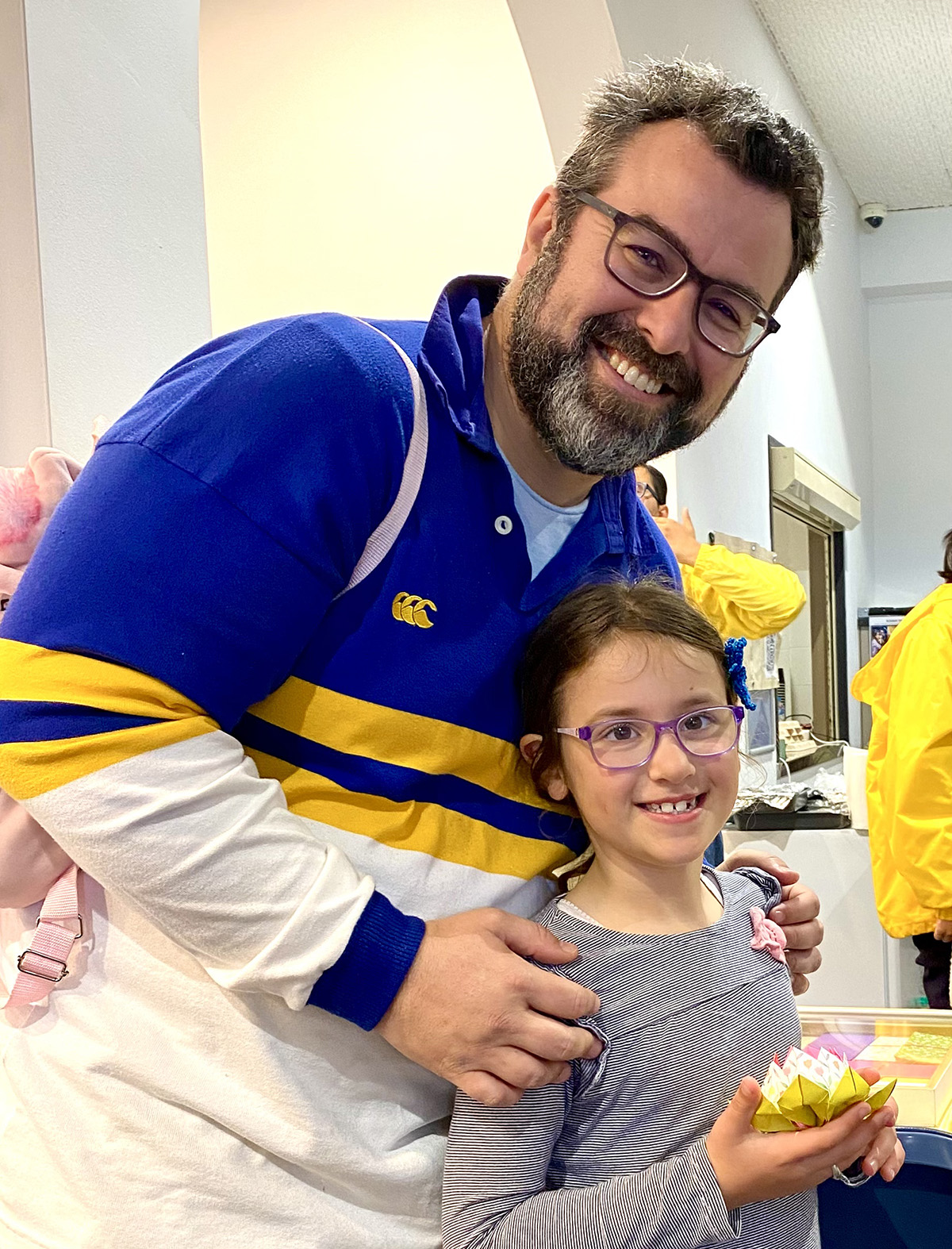 图5:弗农·洛佩斯很高兴看到儿子能专著耐心于折莲花的整个过程。