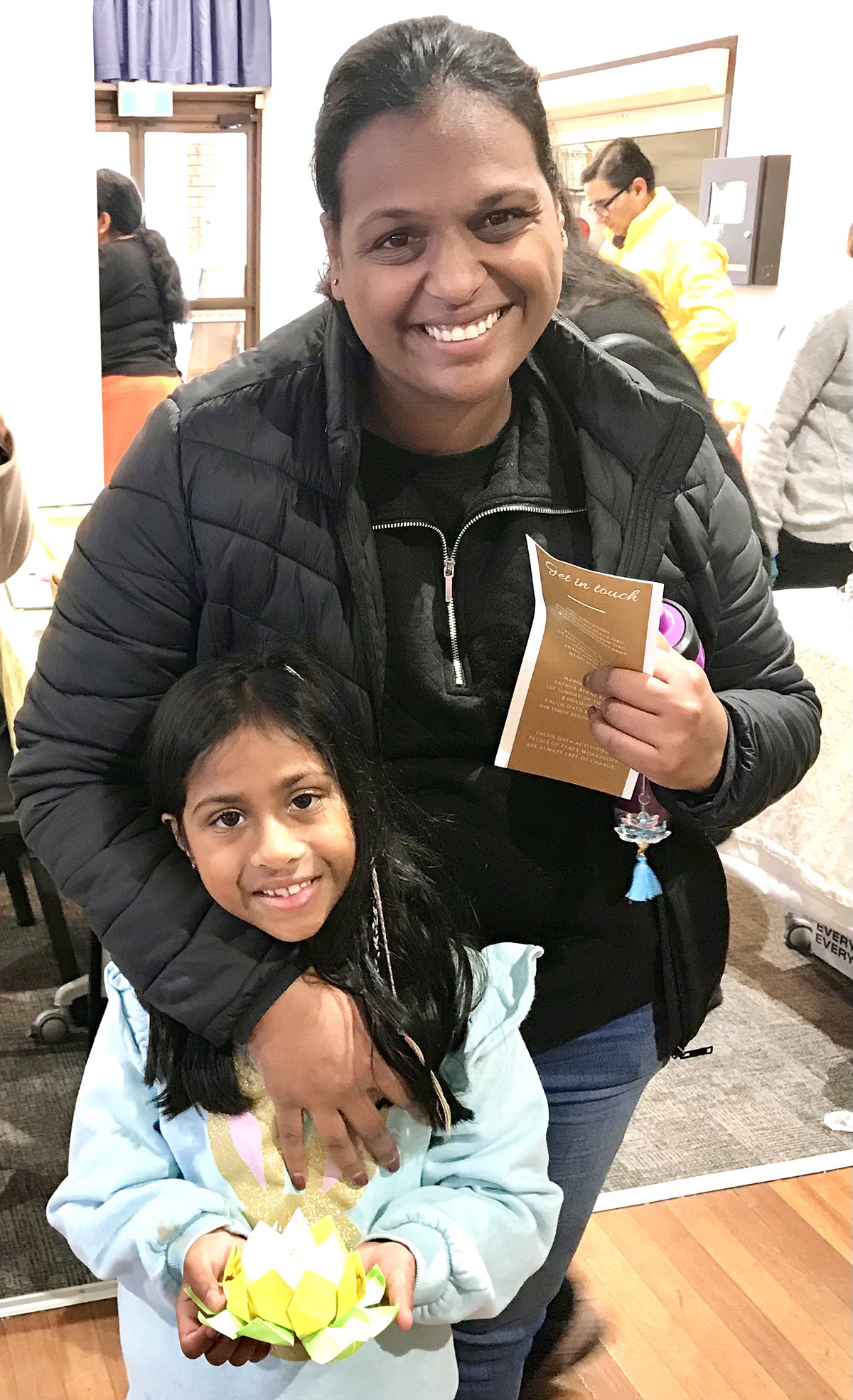 图4:当地居民带着孩子来学习折纸莲花