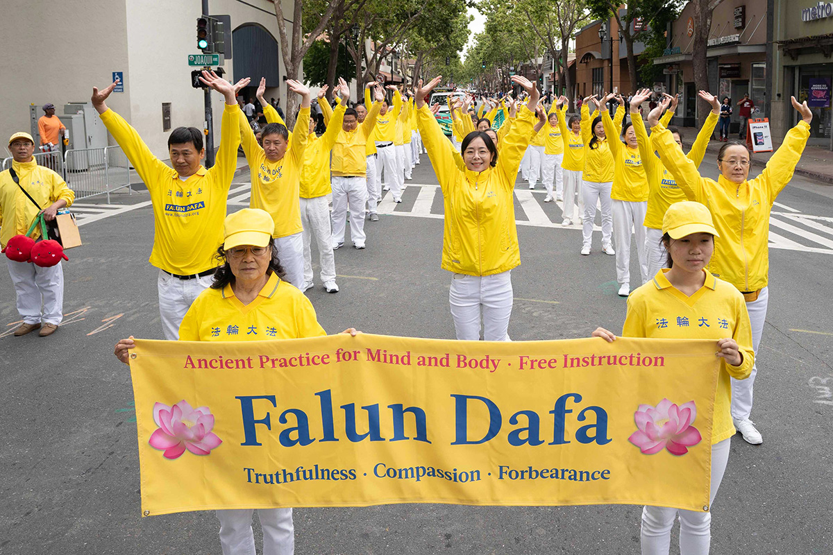 ![]() 图1~4:法轮功学员参加旧金山湾区樱桃节游行 |