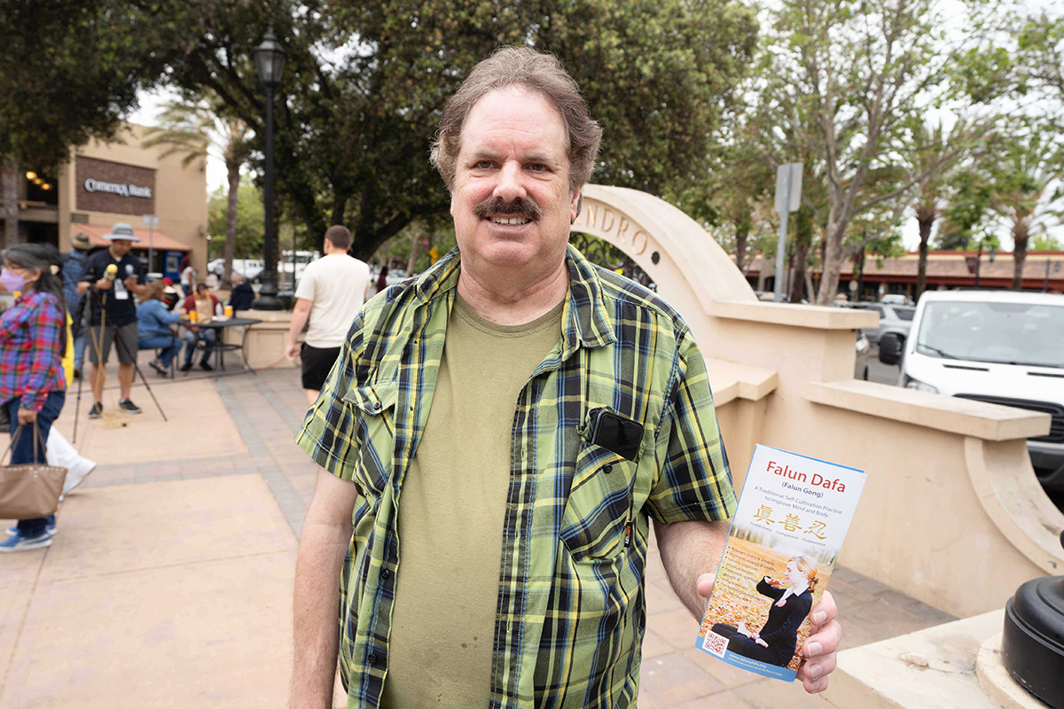 圣丽安珠市民德尔(Del)很高兴看到法轮功学员的队伍,“他们很祥和、平和,我在公园看到过他们炼功,他们真的很棒,非常有神性。”