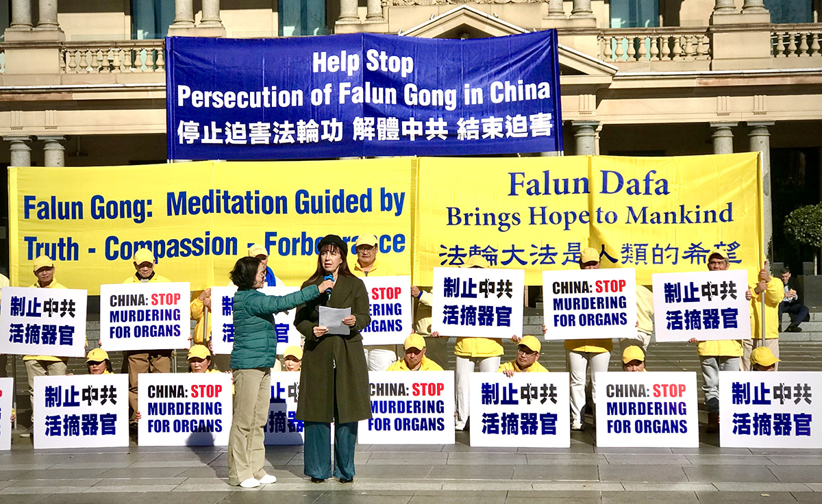 澳洲法轮大法佛学会会长赵博士(Dr Lucy Zhao)说:“中共对法轮功学员的残酷迫害一直是对世界各国政府和人民的挑战。”她接着说:“我想再次感谢所有选择站出来反对这一暴行、反对这一残忍的杀戮政权的人。你们不仅在帮助那些正在受苦、无法为自己发声的中国人,你们还在帮助防止更多的悲剧、更多的杀戮发生,并帮助把这个世界变成一个更美好的世界,留给后代。”