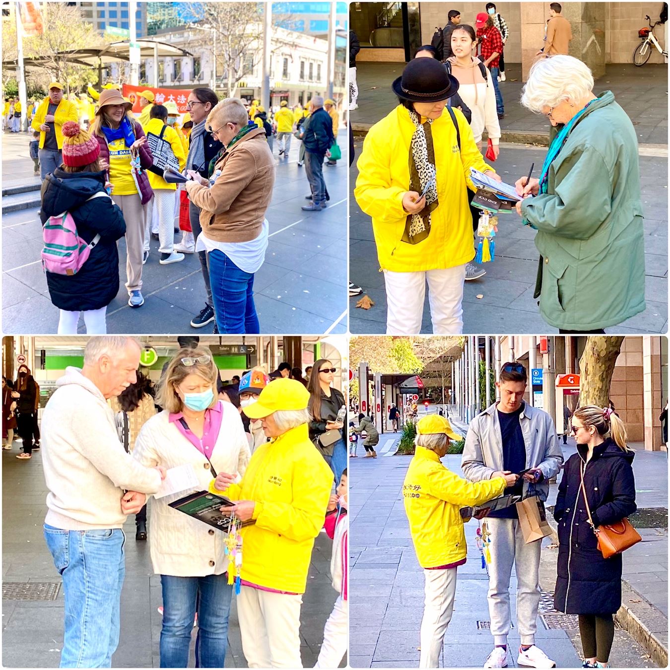 【明慧网二零二二年七月十四日】(明慧悉尼记者站报道)二零二二年七月八日,澳洲悉尼各界人士和法轮功学员在悉尼市中心的海关大楼广场举行“七·二零”反迫害集会。澳洲民众在聆听集会发言和法轮功学员讲述真相后,许多人纷纷签名声援法轮功反迫害。有的人表示宇宙真理真、善、忍对社会非常有益,每个人都应该遵循真、善、忍。还有的人表示,法轮功学员的和平抗议集会让人们口耳相传真相,正义最终会得到伸张。