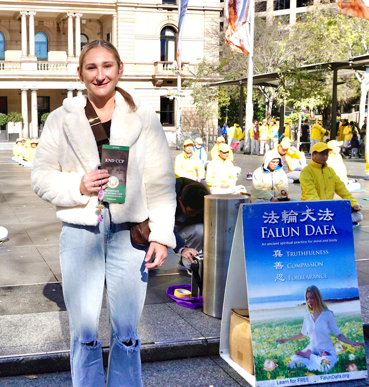 悉尼工程师格雷姆·盖格(Graeme Geiger)表示他自己听了独立媒体的报道后理解到共产党一直在迫害法轮功,这是对他们的人权侵犯行为。他说:“我看到这里的抗议活动,是一种非暴力的和平抗议,他们在祥和的打坐,他们只是向人们展示,他们的人民发生了什么,他们仍然以和平与理性的方式并向世界展示真相。”