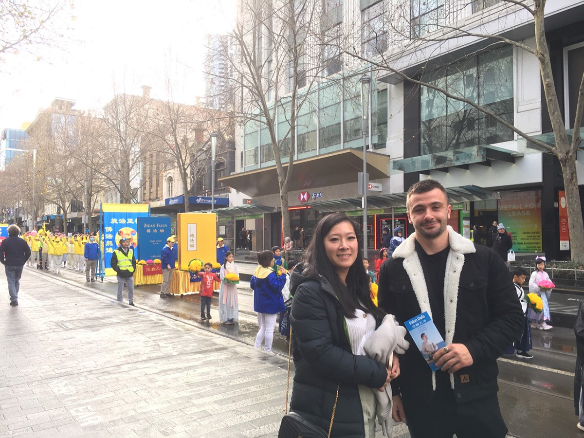 威尔逊赞法轮功学员的游行队伍很棒,她说:“我是华裔第三代,墨尔本的亚裔人口也很大,所以这次活动对于人们了解在中国发生的迫害非常重要。”她说,“虽然我有华人背景,但对此真的不太了解。所以我认为,以这样平和的方式,让人们了解真相真的很好,很了不起,肯定会引起更多人关注的。”
