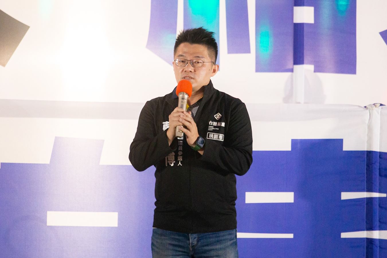 ![]() 图10:台湾基进党桃园党部执行长蓝士博在记者会上发言。 |